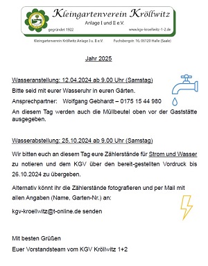 Wasseranstellung / -abstellung 2025,